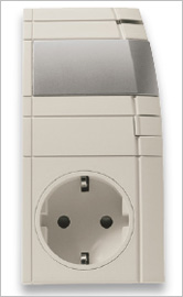 Zwischenstecker, schnell und ohne Werkzeug montiert. Das Gerät ist farblich auf gängige Schalterprogramme abgestimmt.